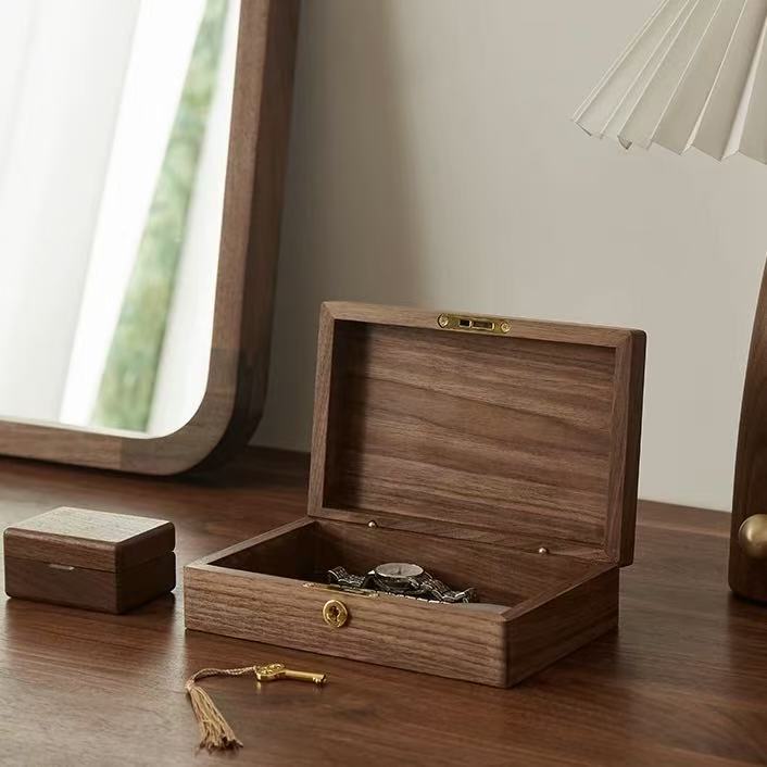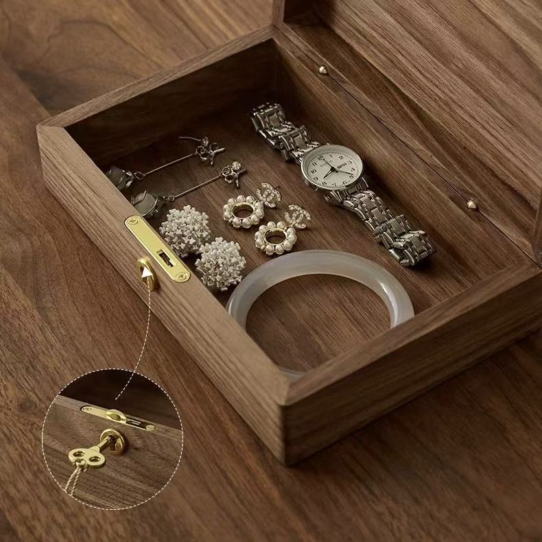 Lora Minimalist Walnut Jewelry Organizer Box with Lock
