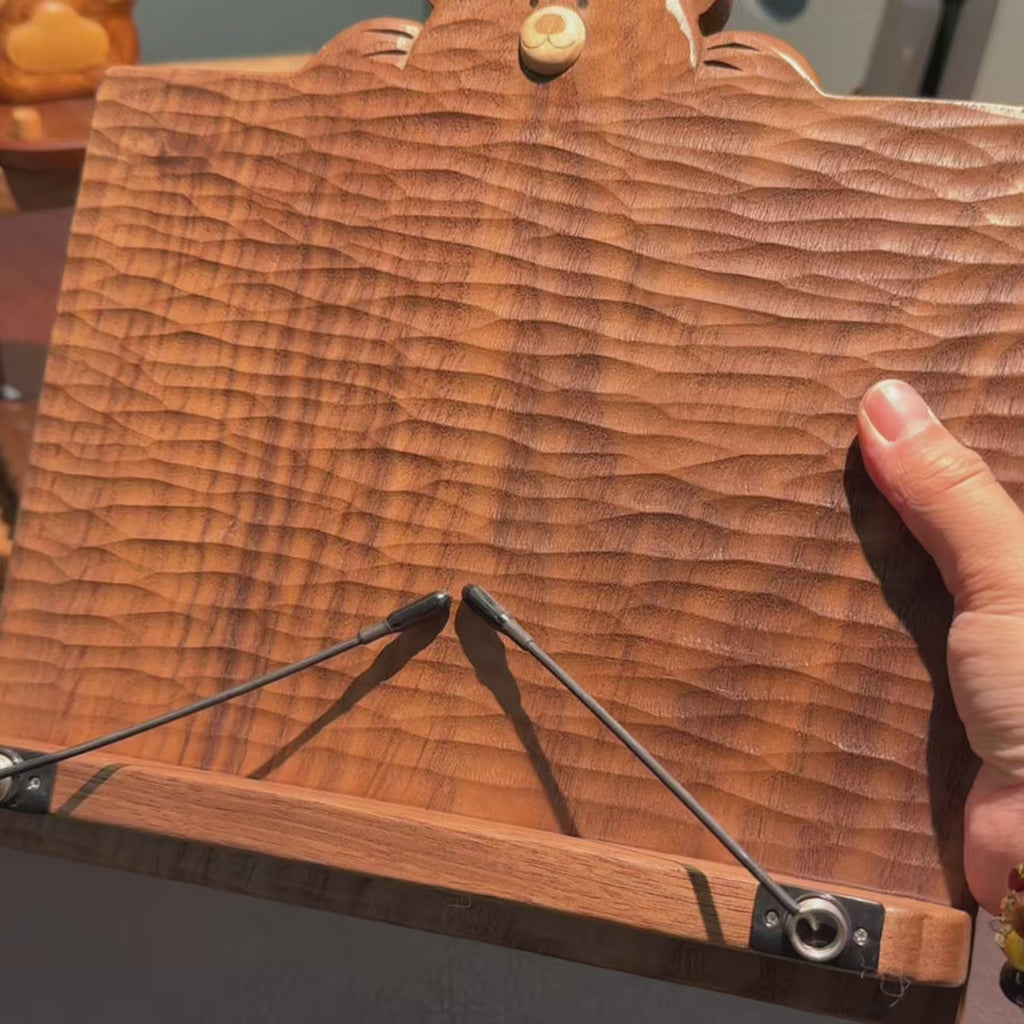 Bear-inspired wooden reading stand for desk