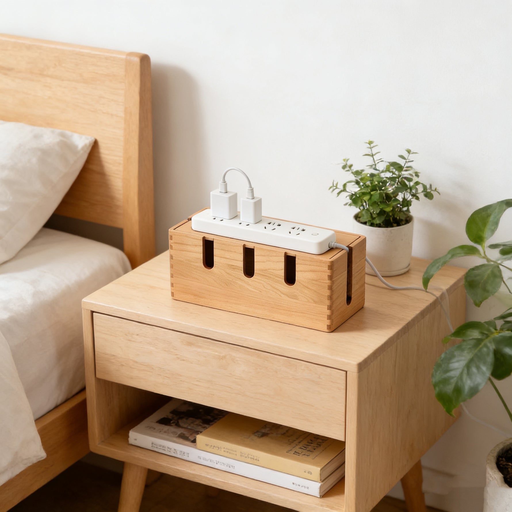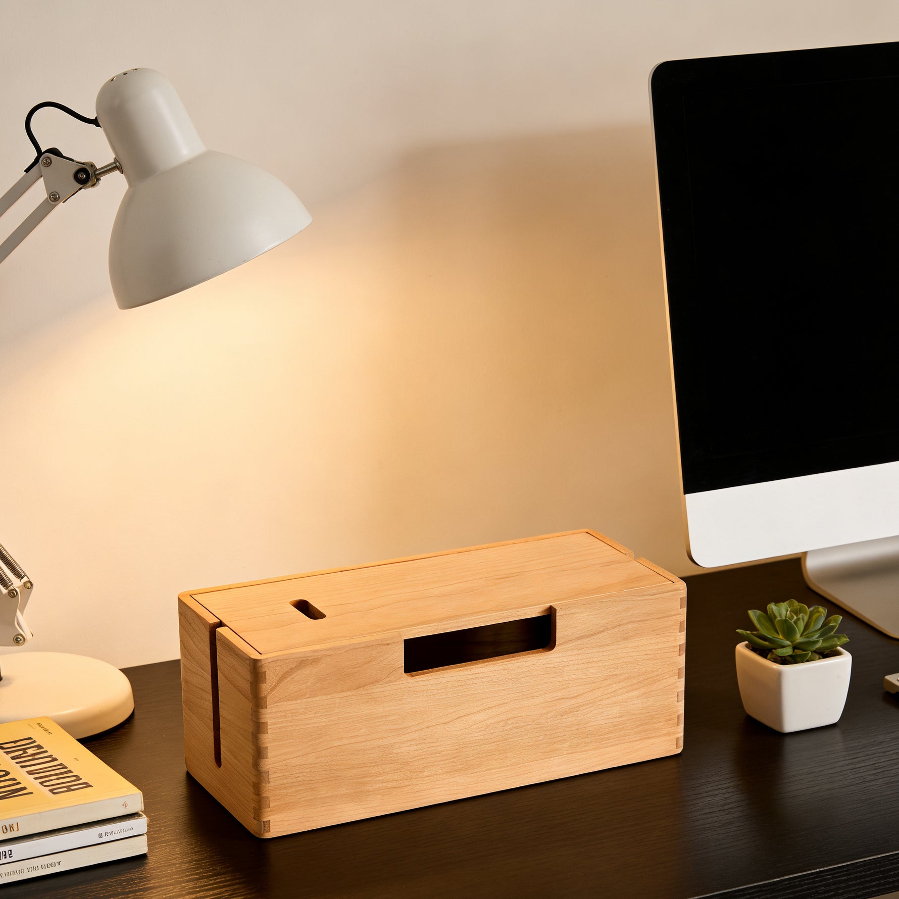 Just slide your power strip inside, thread cables through the built-in slots, and pop on the lid—no more tripping over wires or staring at a jumbled mess. The natural walnut wood looks awesome with any decor style, whether your vibe is modern, rustic, or somewhere in between.