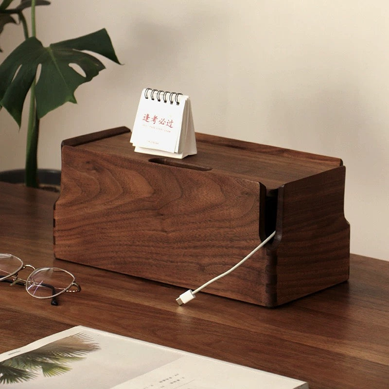 It’s not just about looks, though—this box is built to last. The walnut gets more character over time, so it’s a practical upgrade that also adds a touch of warmth to your space. Perfect for anyone who’s tired of cable clutter but still wants their home to look put-together.