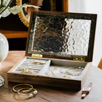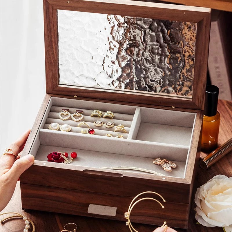 Viv Wooden Jewelry Box with Textured Glass Lid